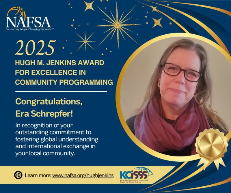 Congratulations to our very own Era Schrepfer, recipient of the Hugh Jenkins Award for Excellence in Community Programming from NAFSA: Association of International Educators.